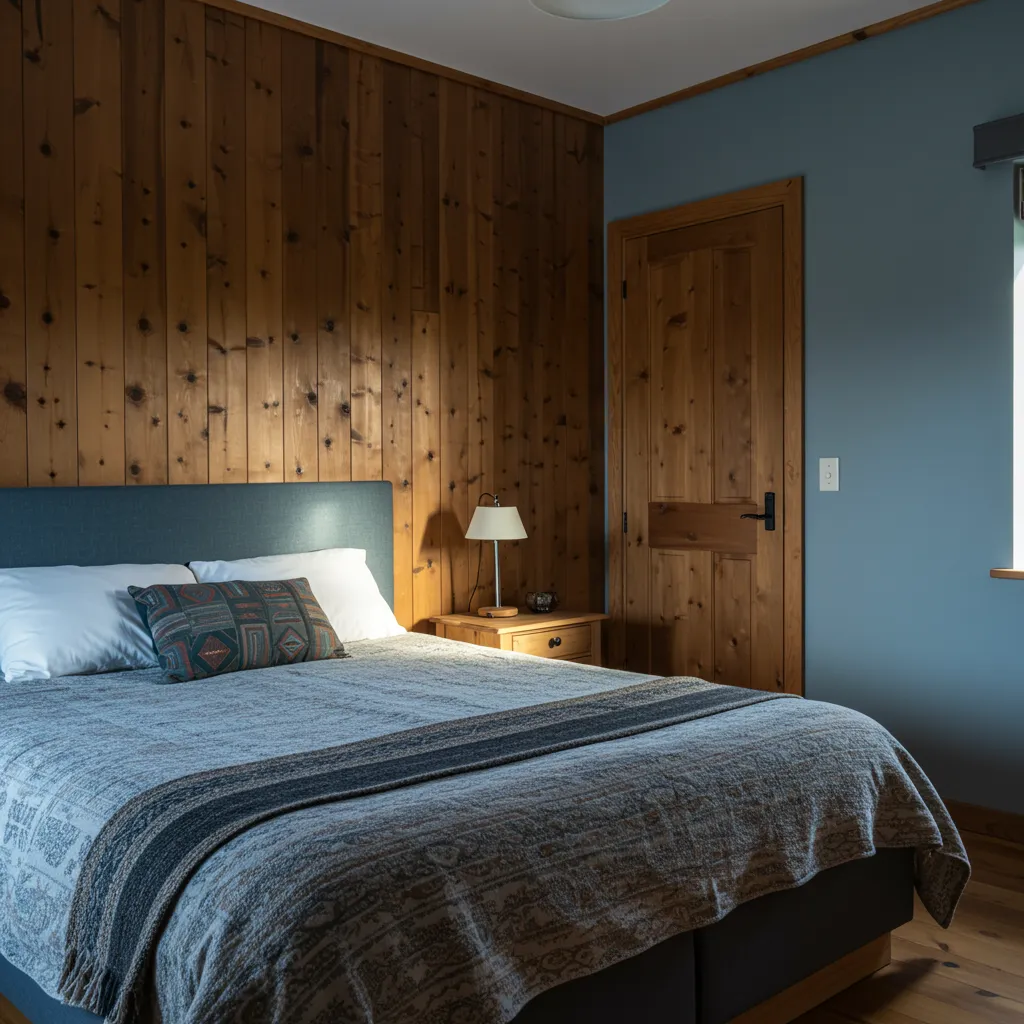 Here’s where I messed up for years — I thought cabin meant everything had to be brown and orange, like an 80s hunting lodge. But the best cabin bedrooms use moodier, more sophisticated colors.
