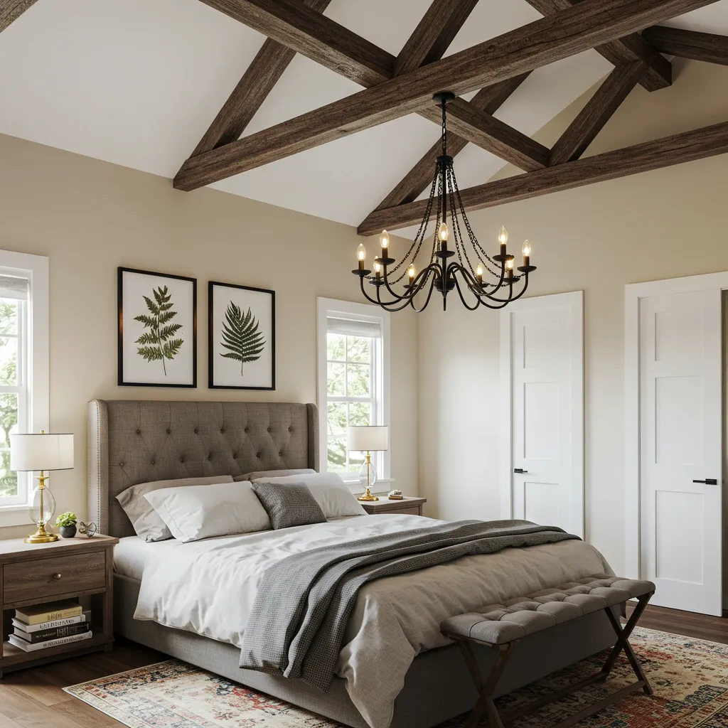 My neighbor Tom added faux beams to his flat ceiling and hung a wrought-iron chandelier that makes the whole room feel twice as tall. Lighting is everything, though. Skip the ceiling fan that screams “suburban” and go for something with personality. Even simple Edison bulbs hanging from beams can completely change the vibe.