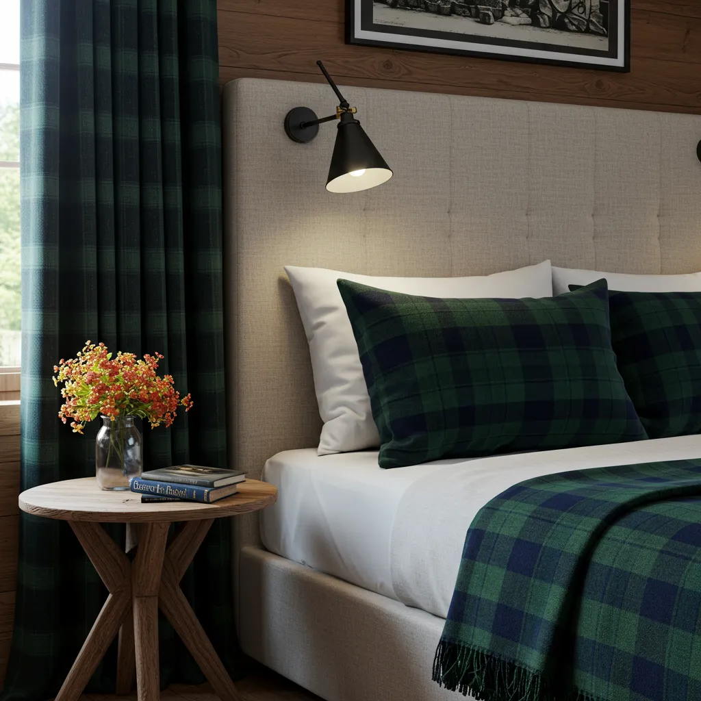 Skip the predictable red-and-black. Try navy and forest green, or subtle gray plaids that add texture without screaming look at me, I’m rustic! Use it sparingly — curtains or a throw pillow. Not bedding, curtains, and rugs all at once.