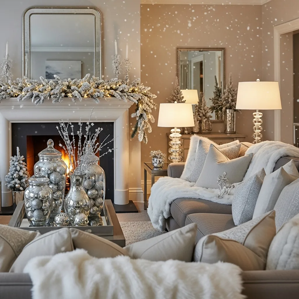 Listen, I discovered this by accident when I spilled white paint on my perfectly green garland. Plot twist? It looked amazing. Now I intentionally go for that flocked, snowy look everywhere. Those mercury glass vases filled with silver ornaments? Game changer. And the white faux-fur throws make everything look like a cozy ski lodge, even if you live in an apartment that’s definitely never seen snow. Pro tip: the fake snow gets EVERYWHERE. You’ll be finding it in July.