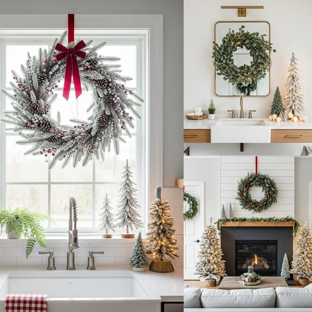 Why limit yourself to one wreath? I hang them in my living room, over the kitchen sink window, even in the bathroom (yes, really). Pair them with mini trees and suddenly your neutral space has personality. My mom thought I was crazy until she saw it, then she copied me. Vindication feels good.
