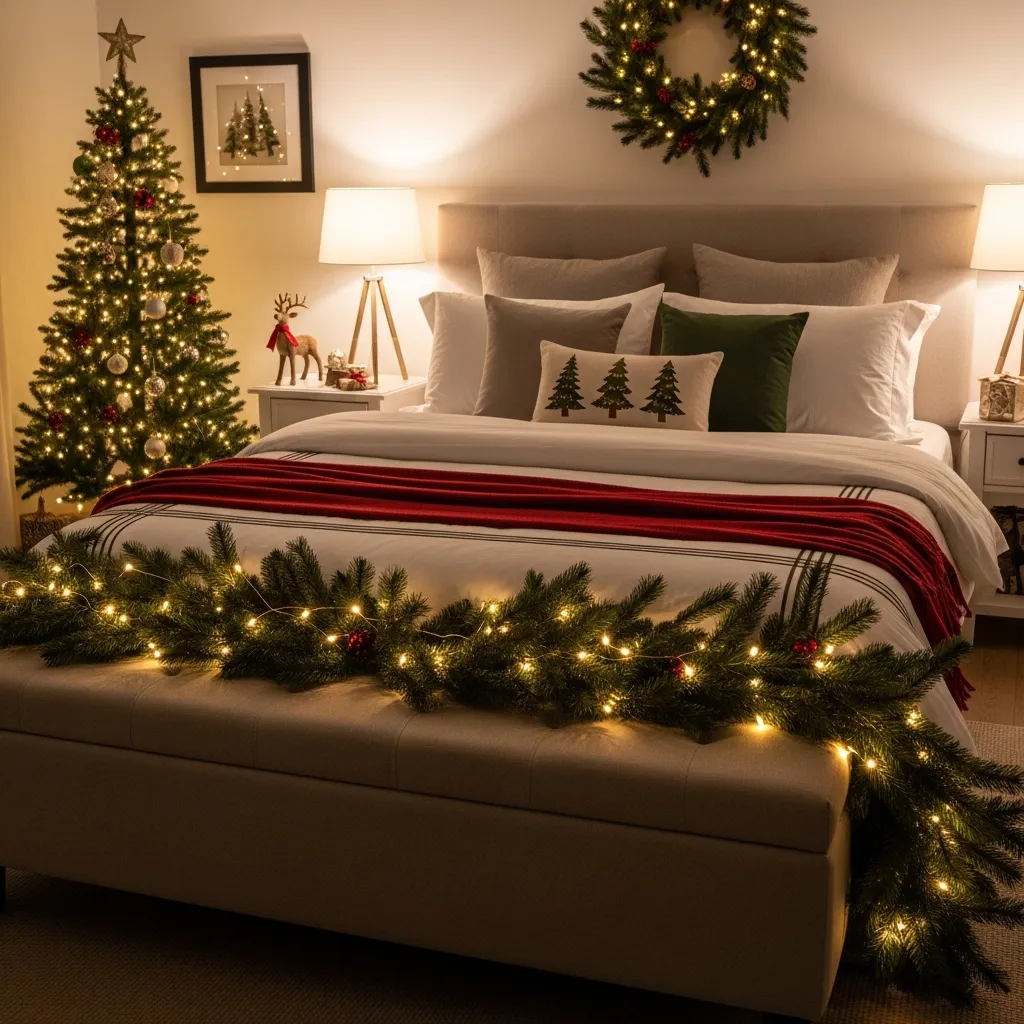 Plot twist: put garland at the foot of your bed. Sounds weird, feels magical. It’s like waking up in a Christmas cottage every morning. Just maybe don’t go too crazy with the lights unless you enjoy sleeping in what feels like Times Square.