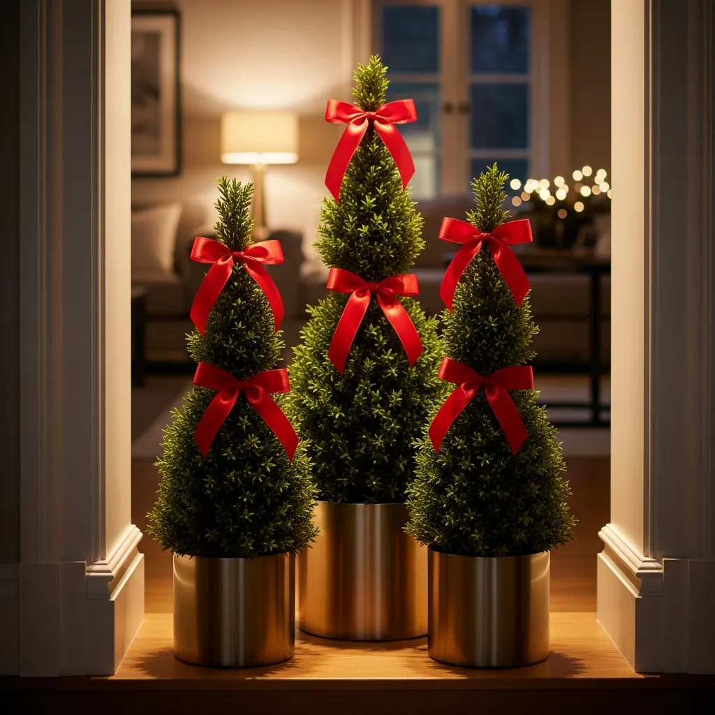 These are for when you want to look sophisticated. Little topiaries with red ribbons grouped together in your entryway or living room nook. They’re refined but still festive. Perfect for people who think a 12-foot inflatable Santa is “a bit much.” (No judgment if that’s your thing, though.)