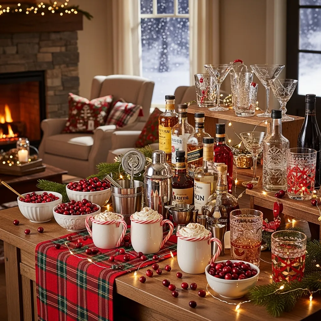Okay, this is where the fun happens. I designate one corner of my living room as the “holiday bar” and stock it with festive cocktail supplies. Candy-cane rim for hot chocolate, cranberry garnishes, the works. It becomes the gathering spot during parties, and honestly, it just makes me feel fancy.