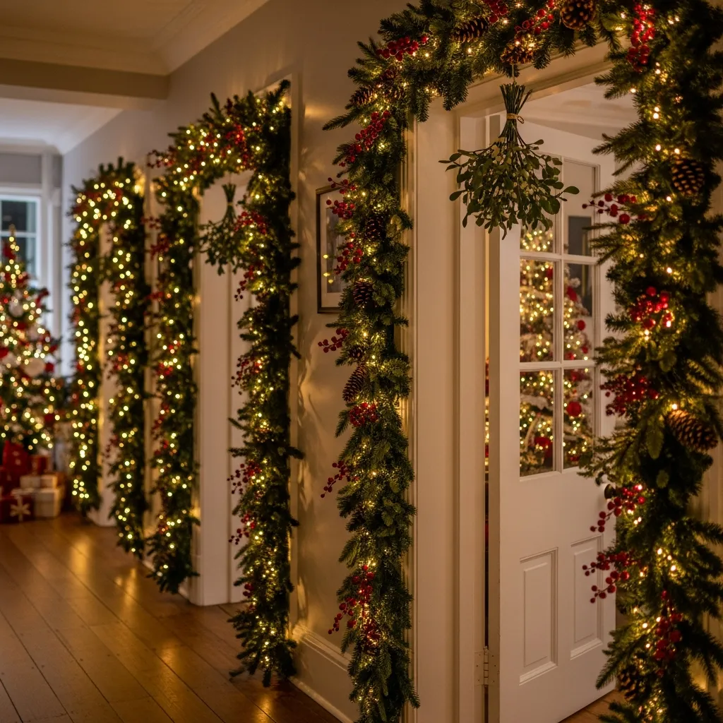 Hang mistletoe in unexpected doorways. Frame interior doors with garland. It creates this magical flow as you move through your house—like you’re wandering through a Christmas forest instead of just going to the bathroom.