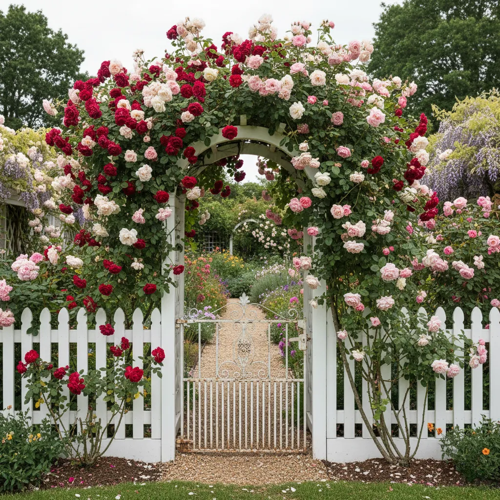 - Create welcoming entries using picket fences, gates, vine-covered arbors, and arches overgrown with roses