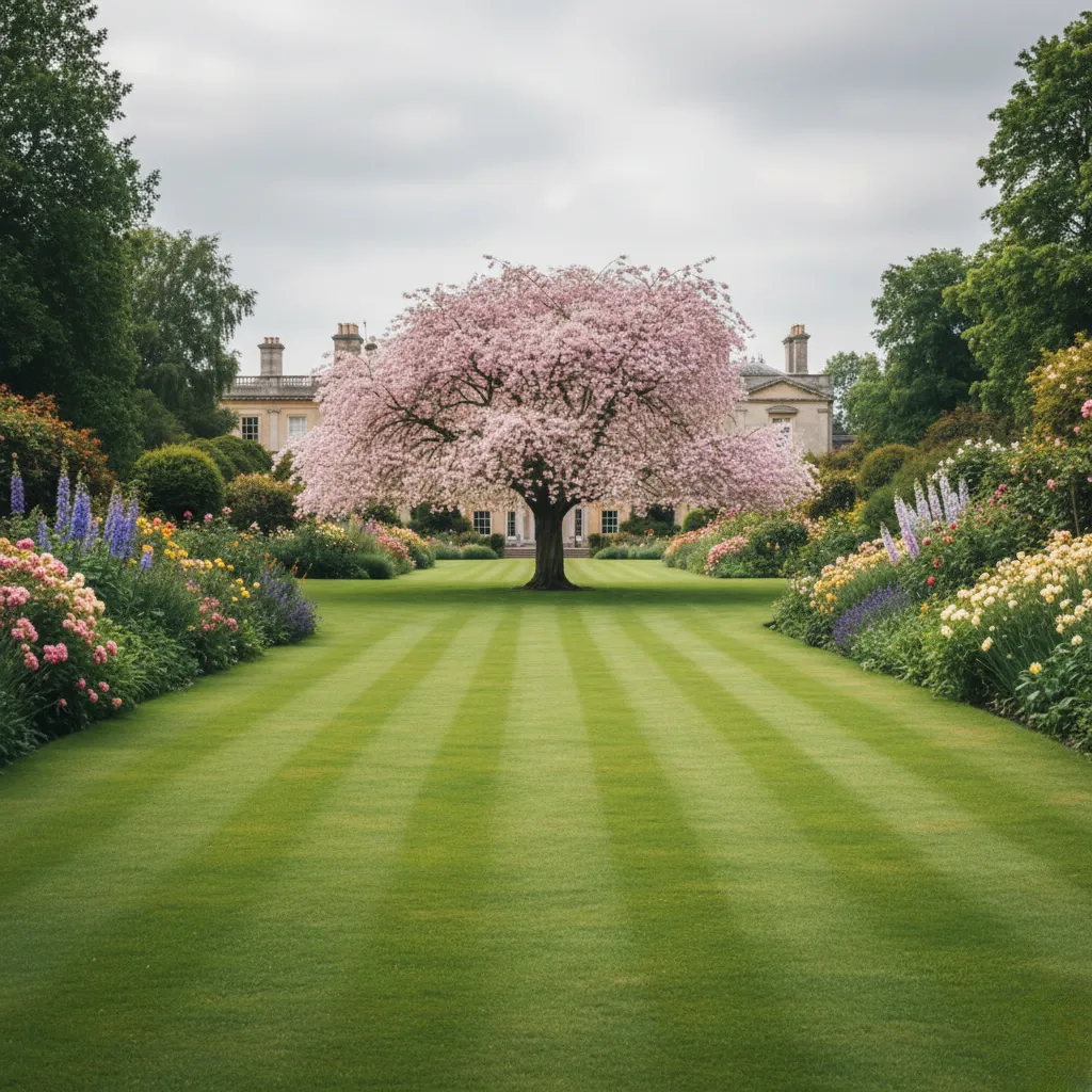 - Feature flowering trees or a solitary sculptural tree as focal point on the green expanse