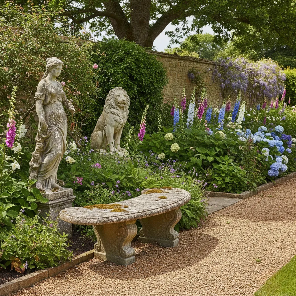 - Incorporate rustic stone benches, ornate statues, and gravel walkways for timeless quality
