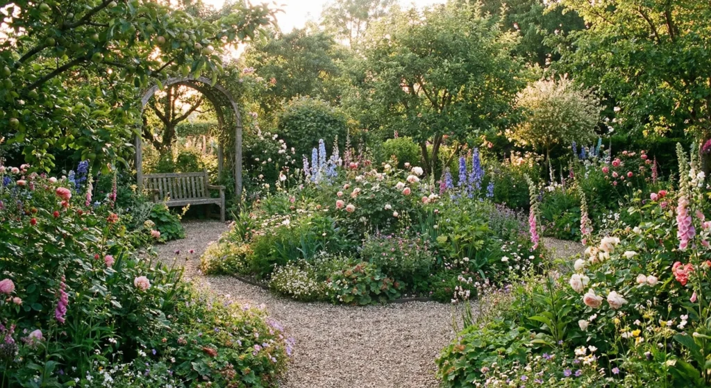- Include self-seeding flowers, roses, lavender, stocks, and sweet peas for scented favorites
