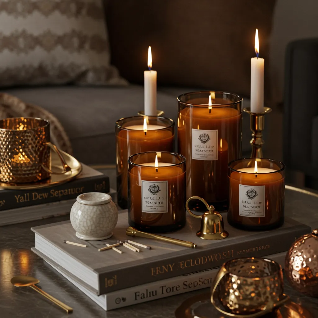 Amber candles with a ceramic match striker and brass snuffer. It makes lighting a candle feel like a ritual, not a frantic lighter hunt. Plus, the metallic shine is gorgeous.