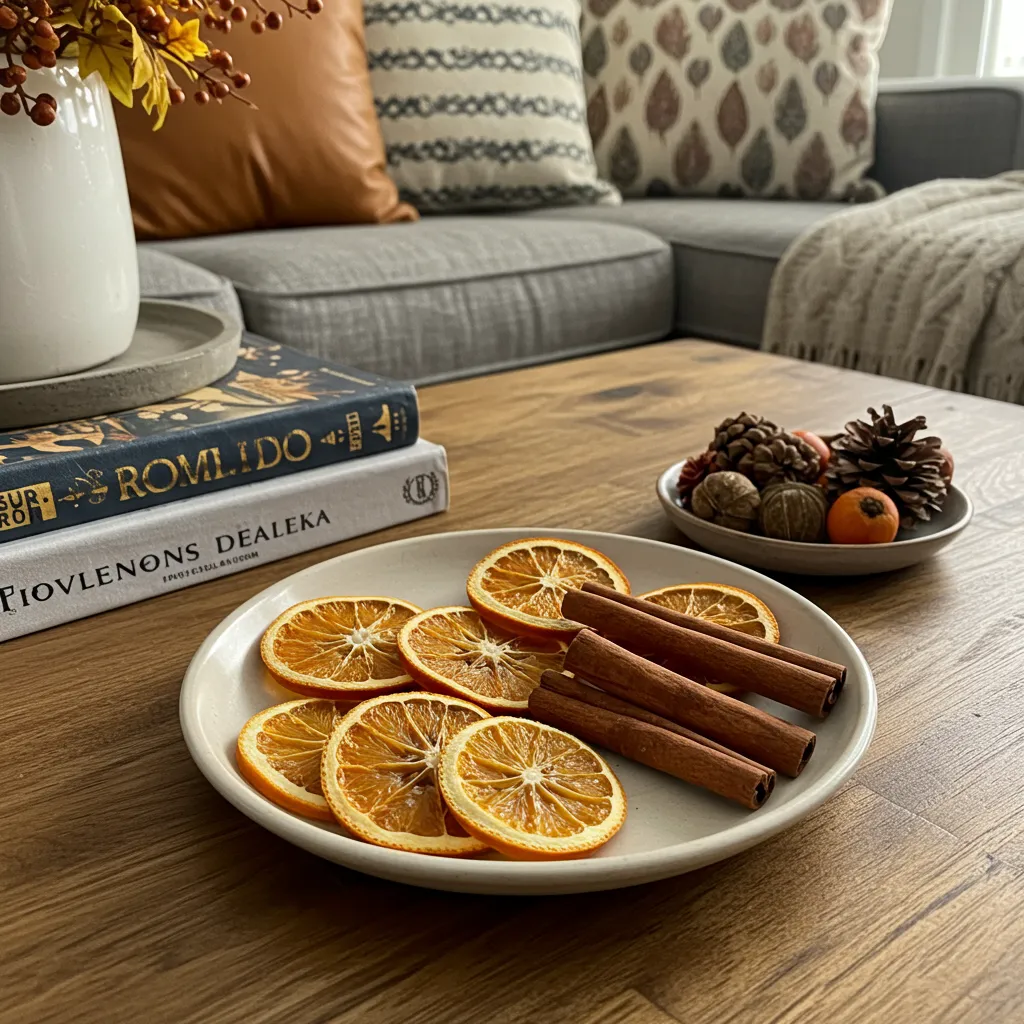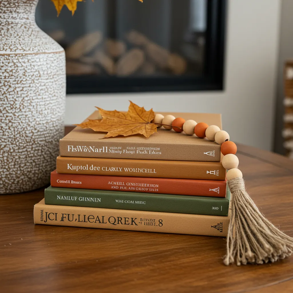 Stack 2–3 coffee table books with fall-toned spines—camel, olive, burnt orange. Top with a pressed leaf or drape a jute garland. Instant “designer” moment. And yes, I’ve bought books solely for their spine colors. No regrets.