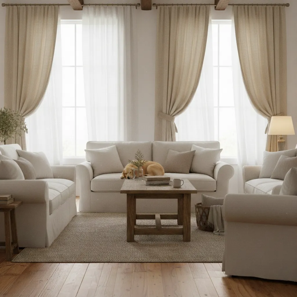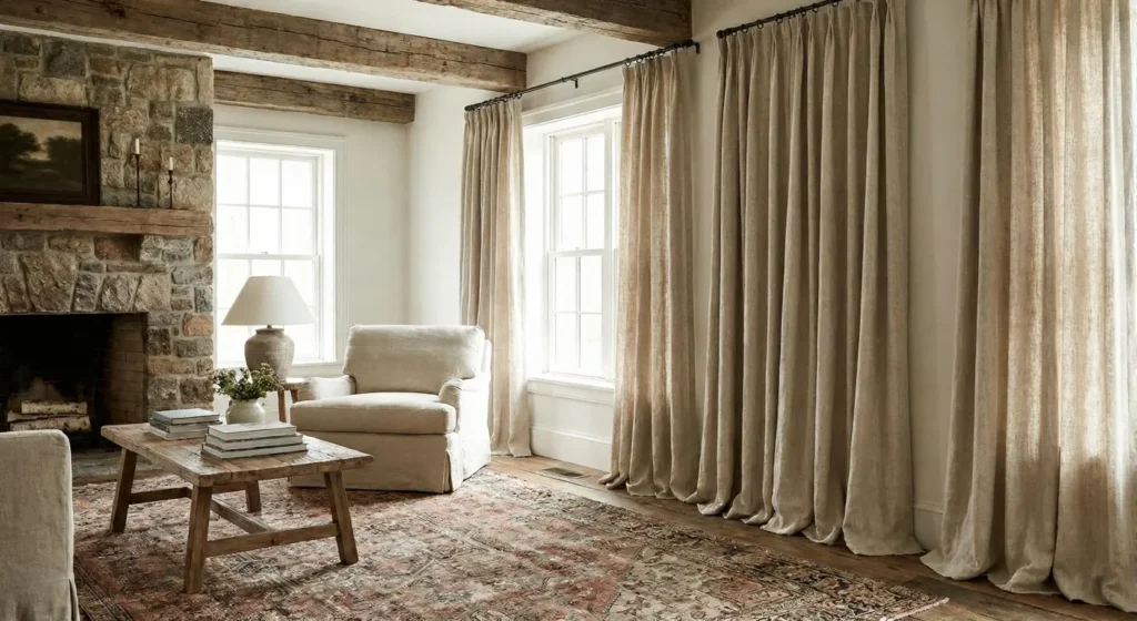 15 Farmhouse Curtain Styles for a Living Room That Feels Relaxed and Lived-In