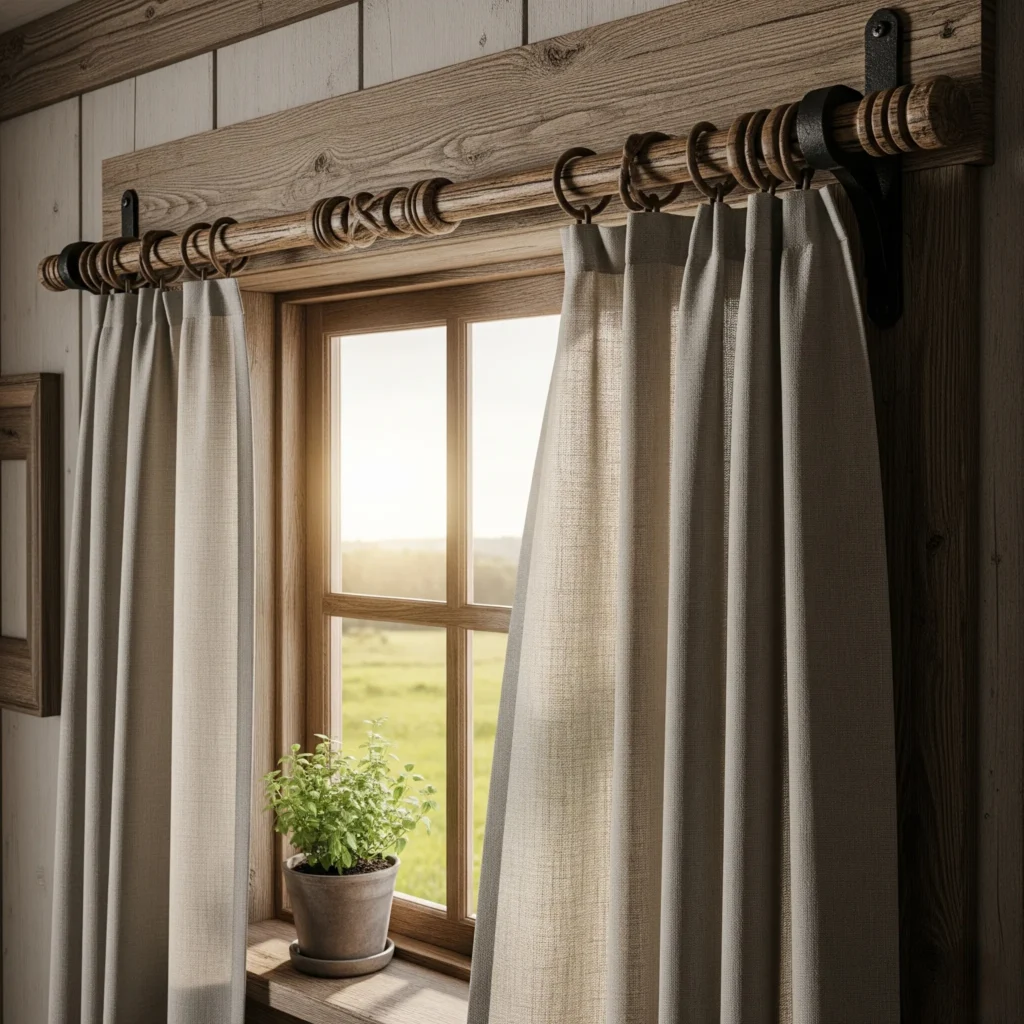 You know the look: chunky wooden rods, iron hooks, the stuff you see in country cabins. I once found a rod at a flea market and sanded it until it felt smooth and worn-in. Hardware is like jewelry for your windows—small, but it matters.