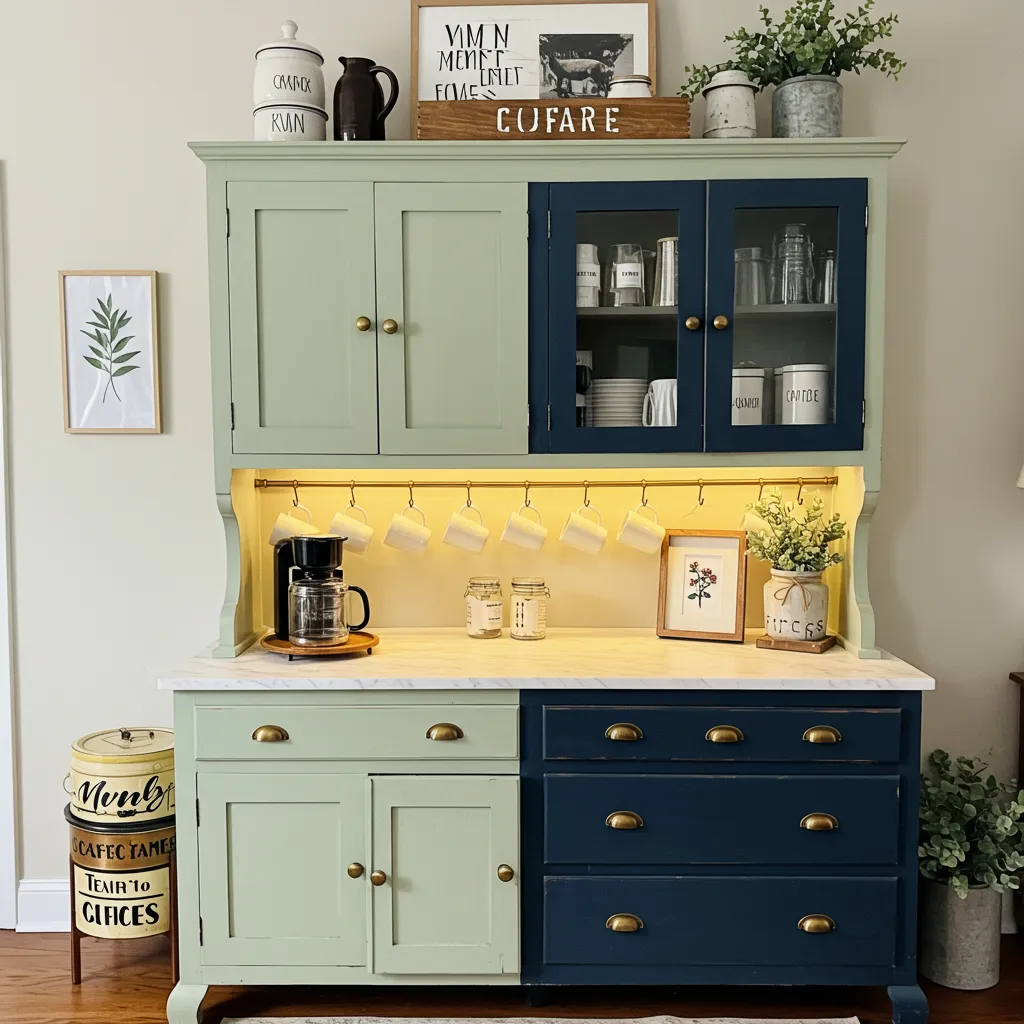 I found this beat-up cabinet at a garage sale, and three coats of paint later, it became my coffee command center. There’s something deeply satisfying about rescuing furniture and giving it a second life. I added some brass hooks for that “I definitely planned this” look, and interior lighting because everything looks better with a little glow. Budget-friendly and story-rich—what more could you want?
