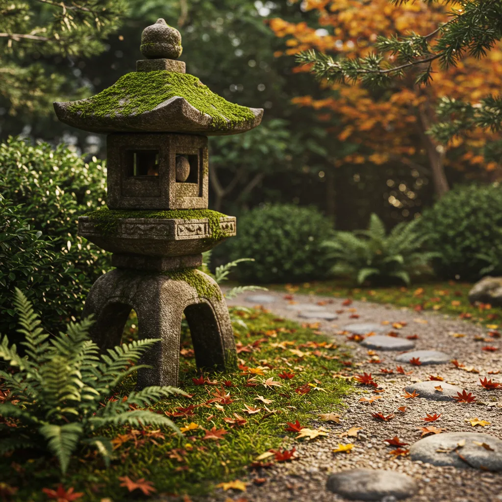 Stone lanterns shaped like pagodas? They look like they’ve been there a hundred years, even when you just plopped them down last weekend. Mine always gets covered in leaves in the fall, which just makes it look even older and moodier.