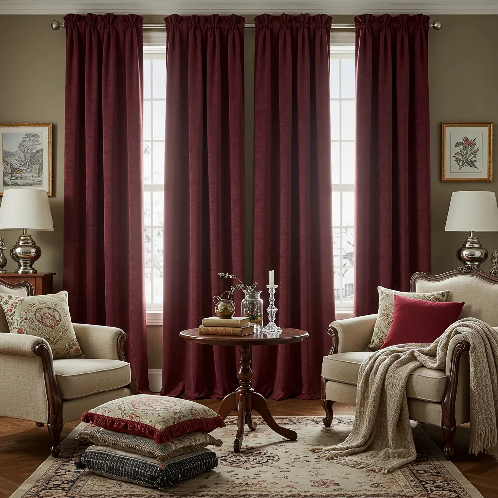 I had these flimsy curtains that were basically just for show. Then winter hit, and I realized they were doing absolutely nothing against the cold. Enter: thermal curtains in deep maroon that make our living room feel like a cozy cave.