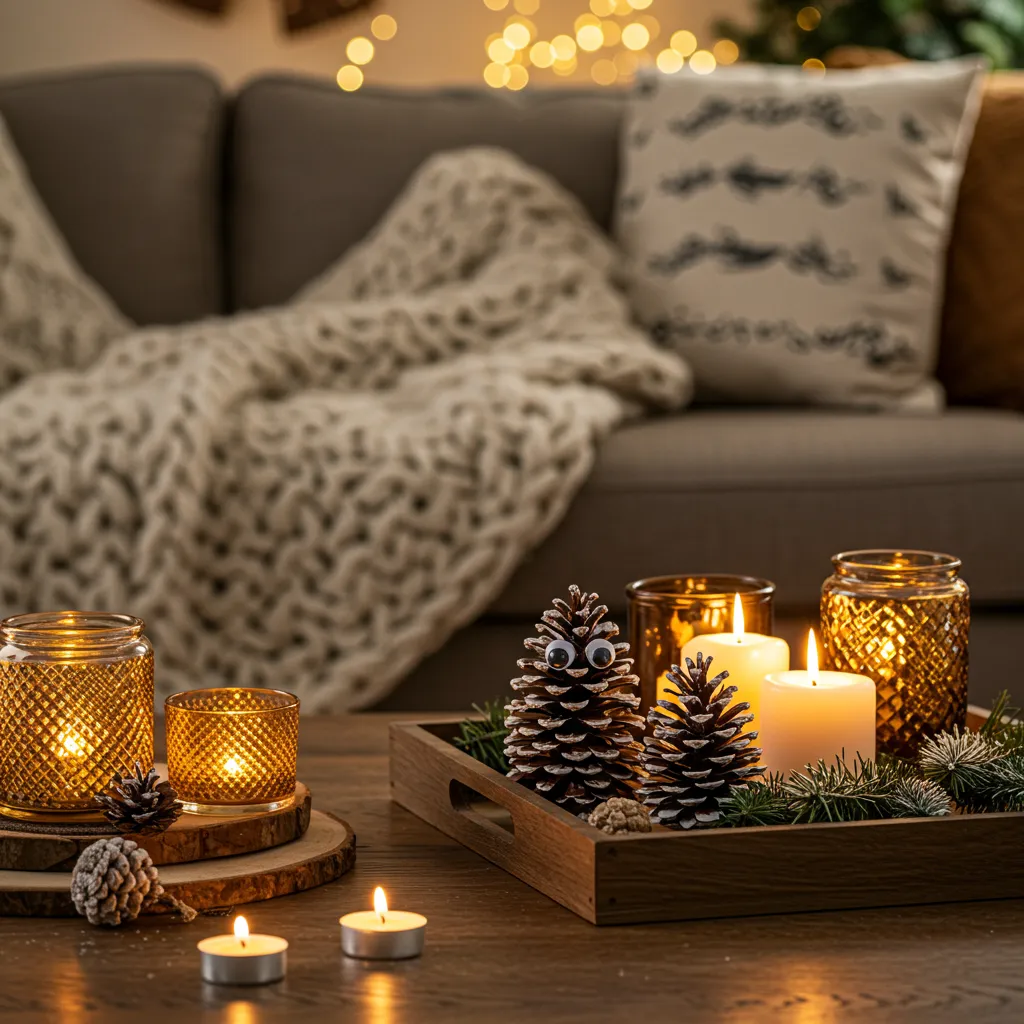 I discovered that pinecones are basically free decorations just lying around outside. Who knew? I gathered a bunch, dusted some with fake snow (which got everywhere—seriously, I’m still finding it), and scattered them around with candles.