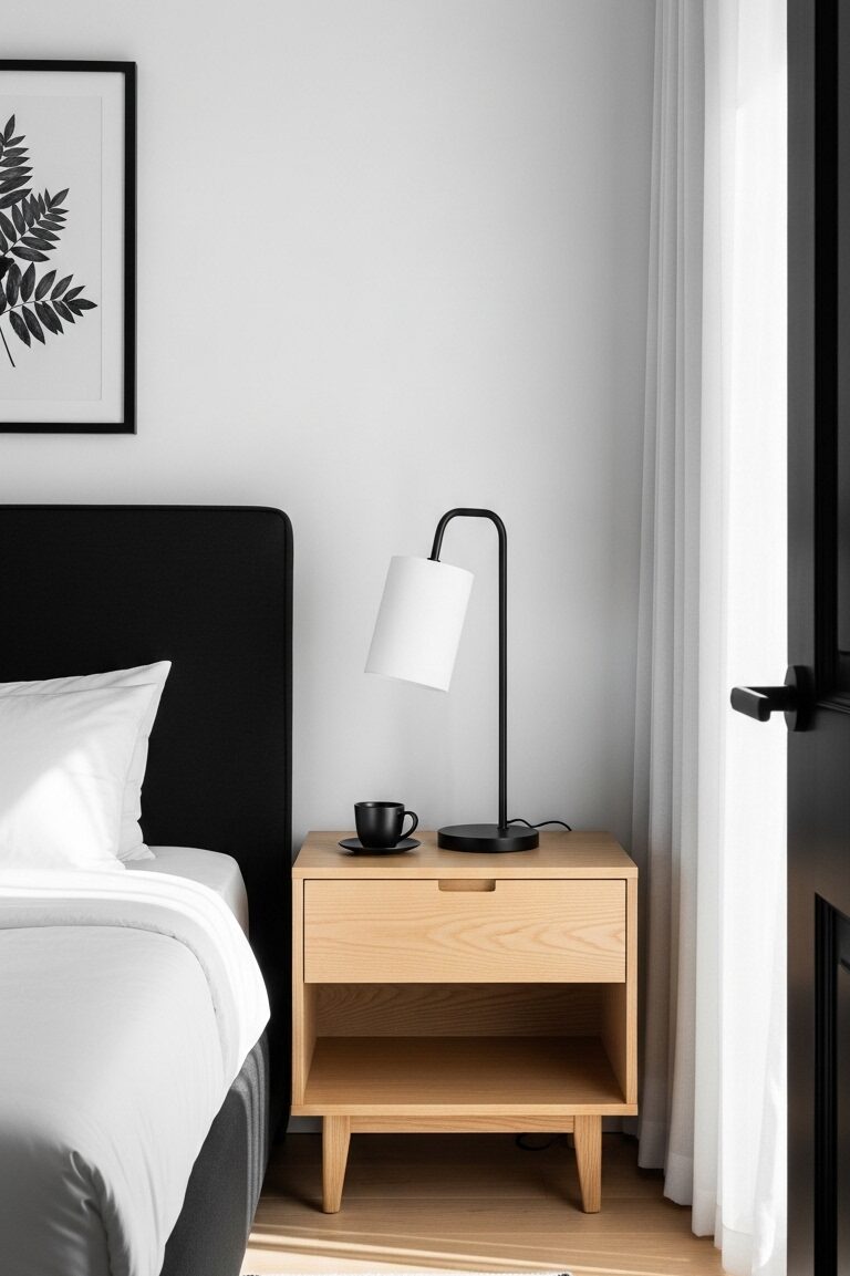 - Add a reclaimed wood nightstand—rustic charm meets sleek style.