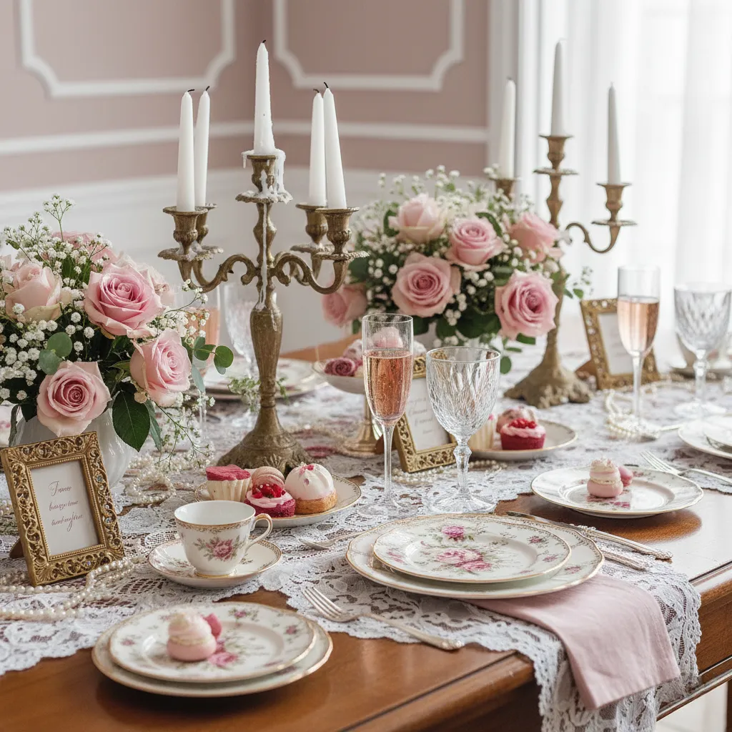 • Create elegant atmosphere with vintage plates, lace runners, and ornate candlesticks​