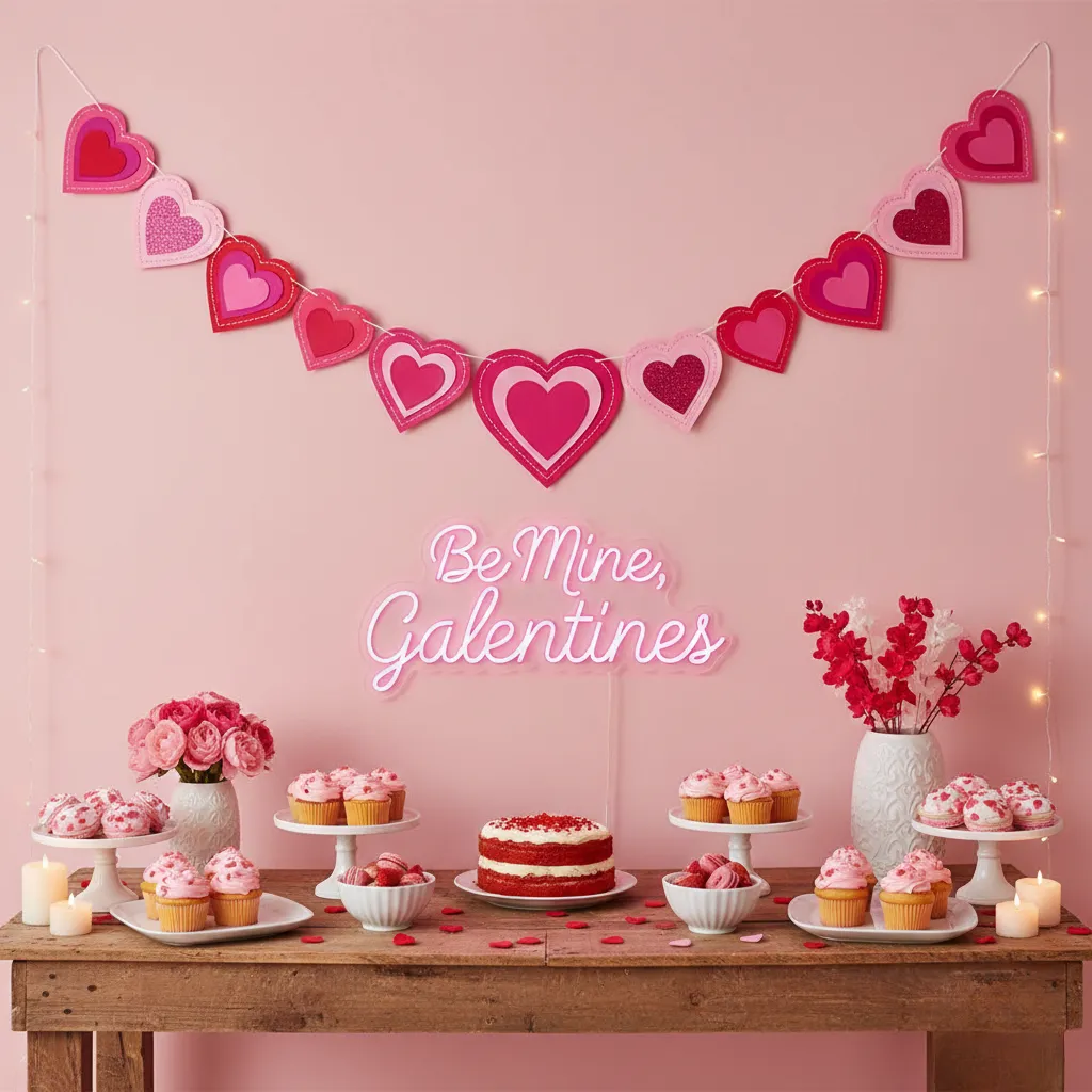 • String up heart-shaped banners across walls or above dessert tables for festive charm​