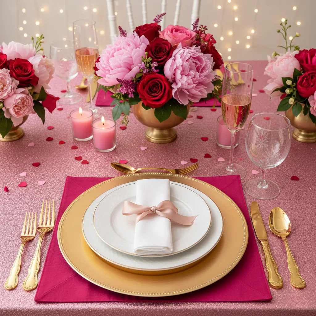 • Use statement table runners or tablecloths in vibrant pinks or glitter as foundation​