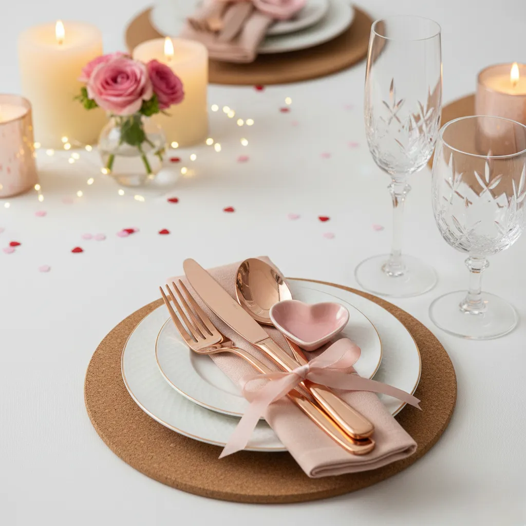 • Use decorative but functional pieces like rose gold cutlery that add flair without cluttering​