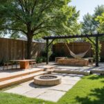 Add a multi‑level seating nook with built‑in benches, a simple pergola‑style shade, and a low‑profile grill for backyard BBQ vibes.