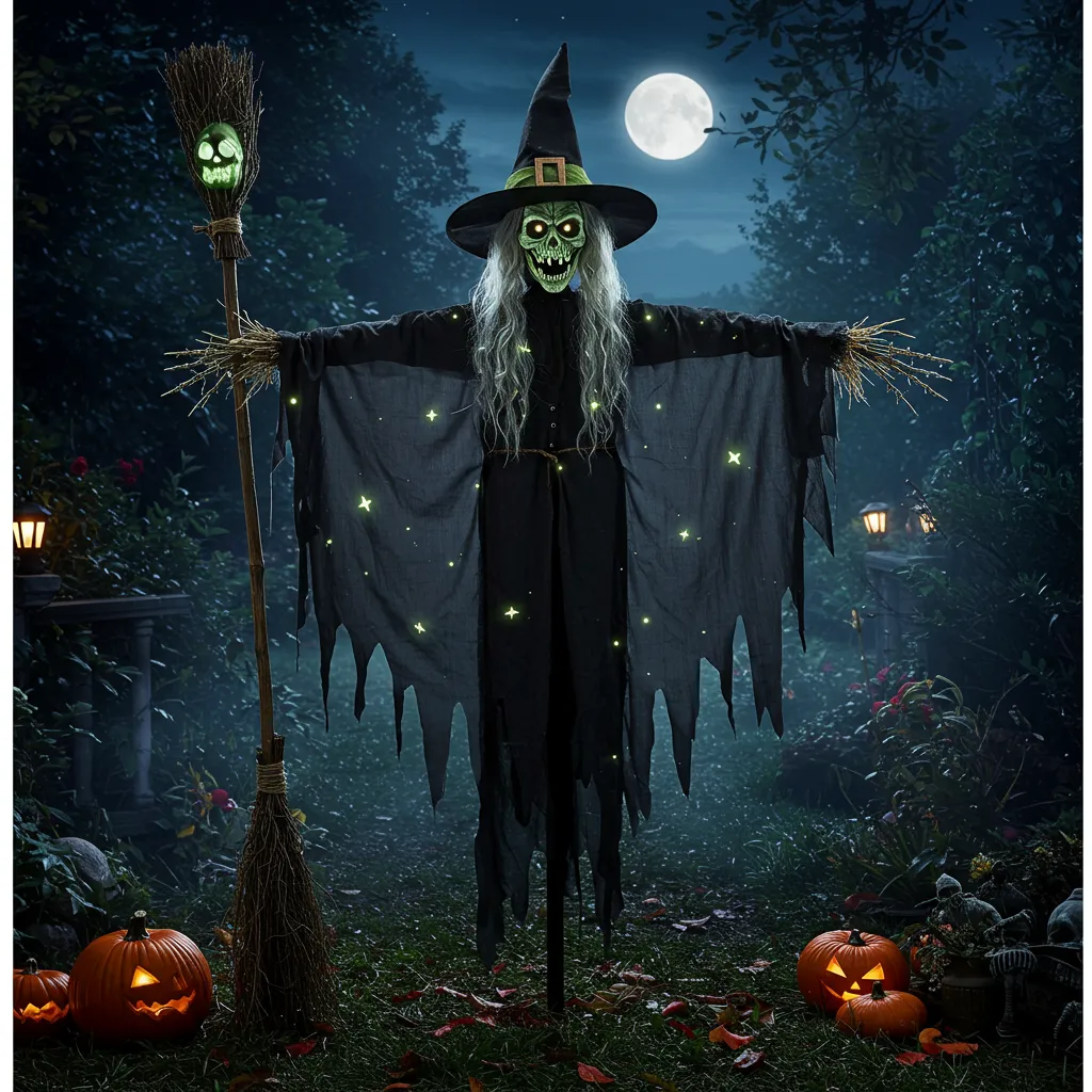Found a heap of black fabric in the Halloween clearance bin—had to use it. Draped it on a frame, added a pointy hat, glow-in-the-dark paint, and boom: Willow.