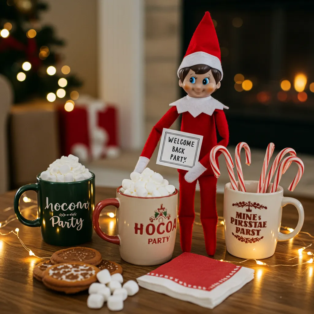 This one’s a real crowd-pleaser. Set up everything needed for the ultimate hot chocolate experience – marshmallows, whipped cream, candy canes, the works. Have your elf leave a sweet note inviting everyone to a “Welcome Back” cocoa party. Pro tip: if you’ve got some Christmas mugs tucked away, now’s the perfect time to break them out!