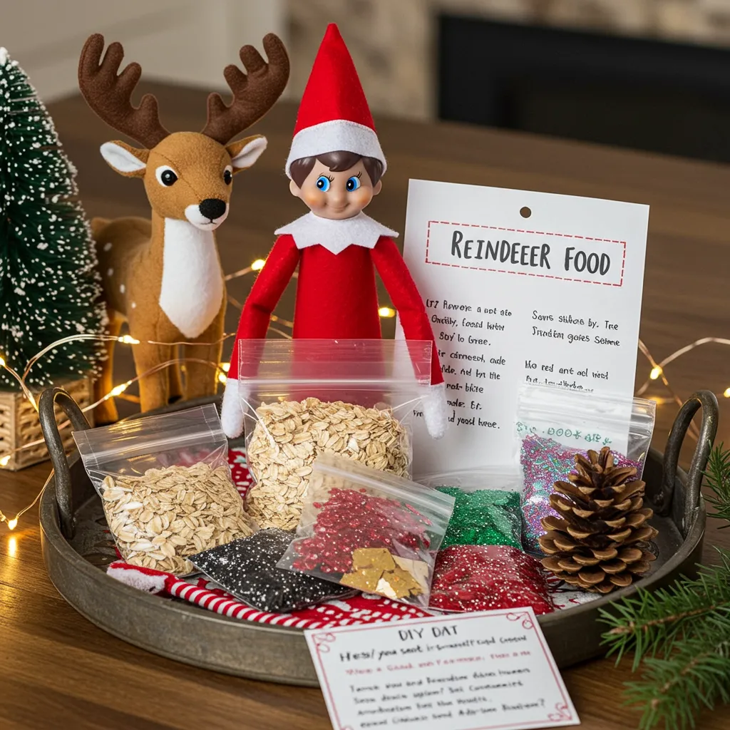 Here’s one that builds excitement for Christmas Eve. Have your elf bring everything needed to make special reindeer food – oats, edible glitter, little baggies, and cute instruction cards. It connects perfectly to leaving treats for Santa’s reindeer and gives kids something to look forward to all month long.