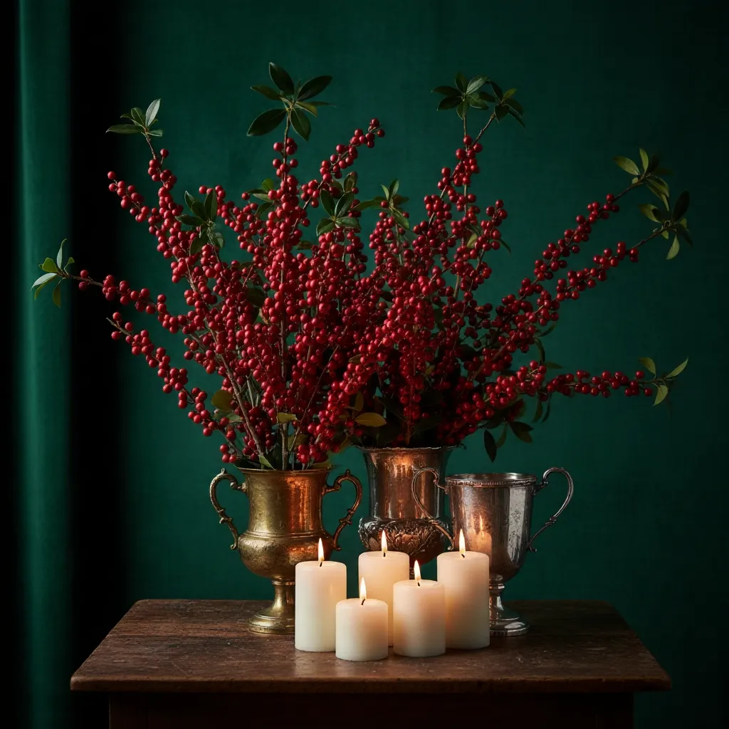 Tall berry branches in a brass vase? Absolutely yes.
