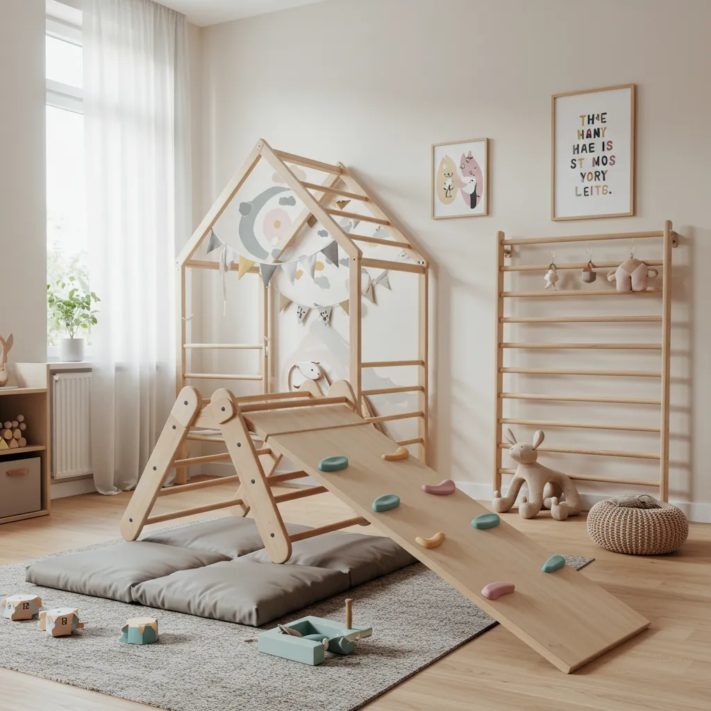 Here’s a gem: a little climbing triangle or play gym right inside. It’s the perfect rainy-day savior or a next-level jungle gym for your living room. Bonus—those climbs build muscles and that “I did it!” grin (which totally makes the noise worth it).