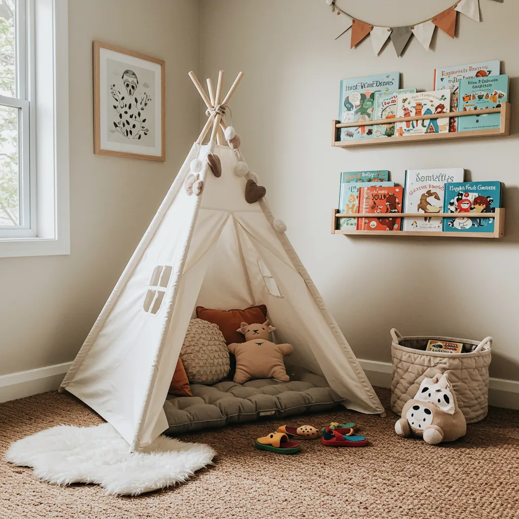 Imagine a tiny tent, just big enough for your toddler and a mound of soft pillows, tucked in a corner. It’s their secret hideout for storytime adventures, crayon masterpieces, or just pretending to be on a camping trip indoors when it’s raining cats and dogs outside. And yes, the book ledges above are usually within their wild reach—hello, upside-down pages!