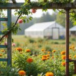 Plant seedlings at the base, guide vines onto the lattice, and watch them climb, thriving in your vertical garden oasis. For best results, consider heat-resistant varieties that can flourish in warmer conditions.